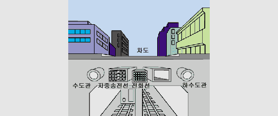 송전선이란 무엇인가? 또 전력은 전압과 전류의 곱으로 결정되므로 전압을 높이면 그 만큼 송전선에 흐르는 전류는 적어진다. 따라서 가늘어도 되며 전선비가 적어지는 이점이 있다. 그 때문에 송전선의 전압은 높으며, 현재는 765㎸가 가장 높은 송전 전압이다. 가공 송전선과 지중 송전선 송전선에는 가공 송전선과 지중 송전선이 있다. 하이킹 등을 할 때 산을 넘고 골짜기를 건너 그림7-2 와 같이 여러 개의 송전 철탑이 계속되는 것을 볼 수 있는데, 이것은 가공 송전선이다. 그러나 도시의 하늘에는 송전선이 눈에 띄지 않는다. 인구가 밀집되어 있는 도시에서는 송전선이 케이블로 지하에 매립되어, 그림7-3 과 같이 지중 송전선으로 시설되어 있다. 대한 전기협회 자료출처 |